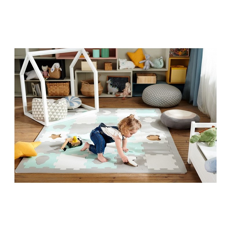 La superficie áspera de las piezas de puzzle protege perfectamente al bebé de resbalar mientras gatea y da los primeros pasos.