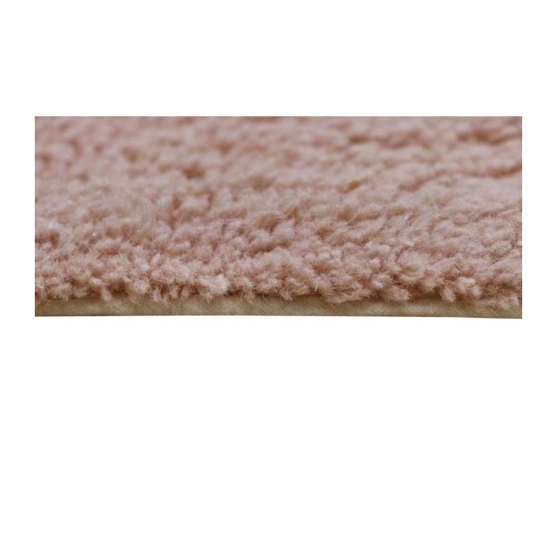 La alfombra está confeccionada en pelo corto de lana y en los colores dusty pink y misty rose.
