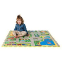 La alfombra de juego Ciudad es el complemento ideal para el entretenimiento infantil. Con 16 alfombras de espuma entrelazables, incluye carreteras de 6 cm, edificios como estadios y hospitales, y 11 formas de automóviles extraíbles. Su diseño permite un juego seguro y divertido.