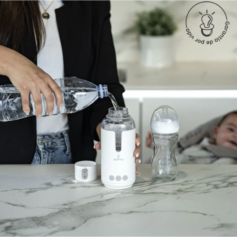 El calientabiberones Izybaby es un accesorio práctico y seguro para preparar biberones y calentar comida de bebé de forma rápida y uniforme.