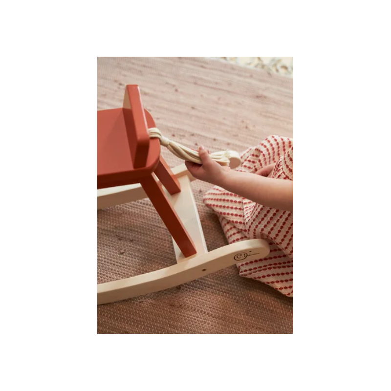 Este Caballo balancín de madera de Kids Concept tiene asas resistentes y patines de balancín con protección antivuelco para que los niños se sientan seguros.