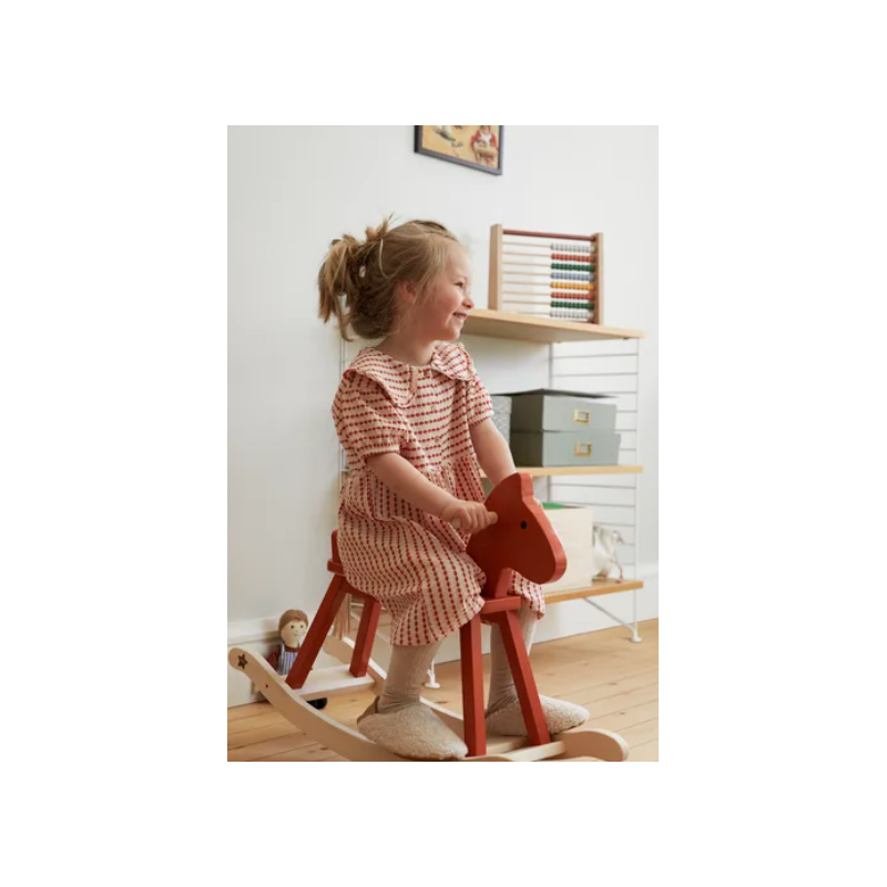 Un caballito balancín clásico pero de estilo y acabado moderno que gustará a nuestros pequeños y quedará precioso como elemento de decoración en los espacios infantiles.