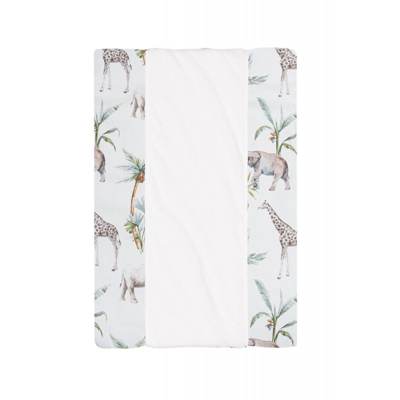 Este bonito cambiador de la colección África de Bimbidreams es cómodo y acogedor, ofrece la máxima suavidad a la hora de los cambios de pañal y de ropa.