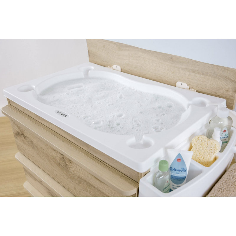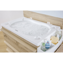 Esta bañera cambiador está fabricada en un estilo natural único, que aporta calidez y elegancia a los espacios infantiles.