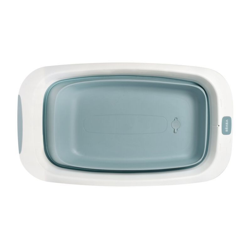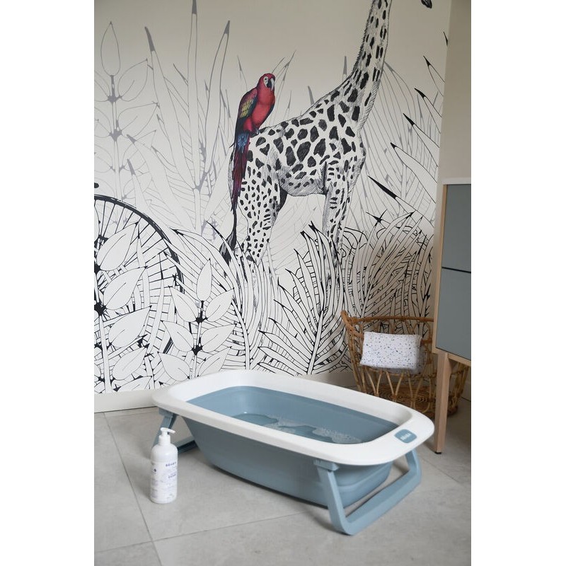 Bañera Eazy Pop Cameleo de Béaba totalmente plegable que ofrece comodidad a papá y mamá a la hora del baño.