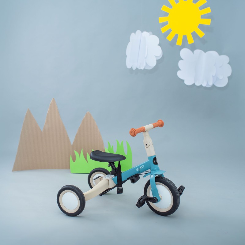 El triciclo multifunción Gyro Olmitos de 1 a 5 años es un vehículo evolutivo diseñado para adaptarse al crecimiento del niño, ofreciendo seguridad, comodidad y diversión en cada etapa.