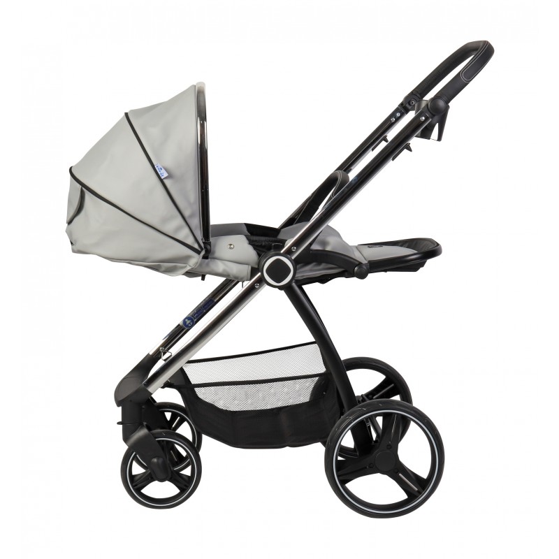 - El chasis del cochecito se puede plegar junto con la silla de paseo, lo que facilita el transporte.