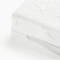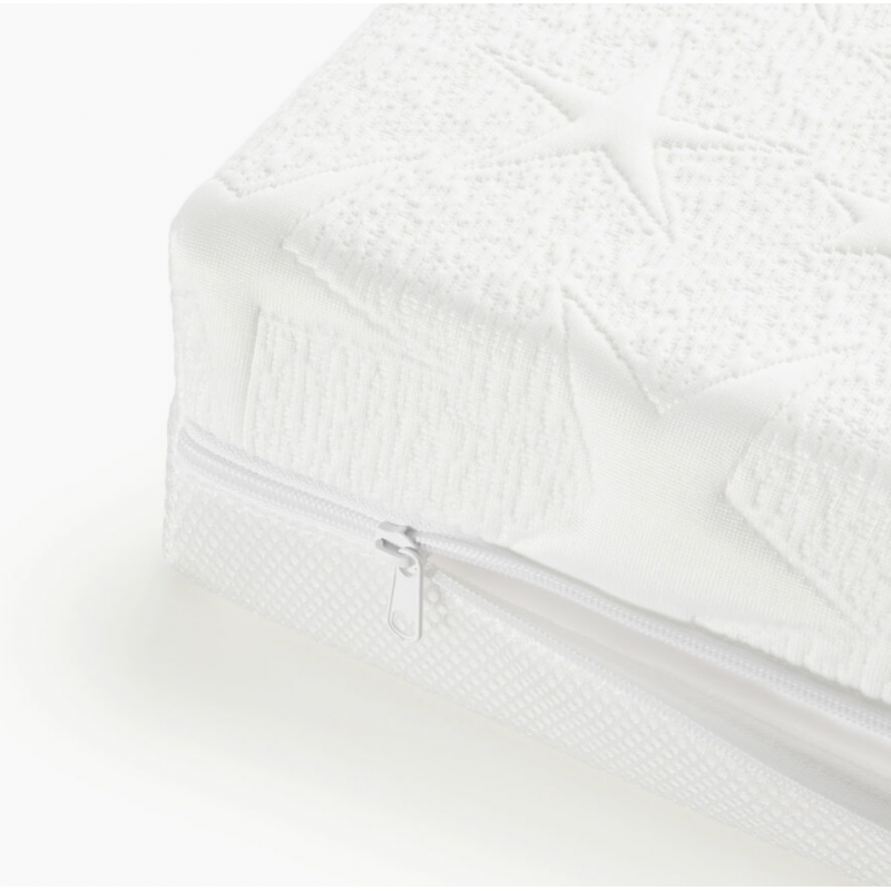 La cara de verano se confecciona con un tejido técnico en 3 dimensiones, que ademas de permitir la máxima transpiración, crea una capa de aire entre el bebe y el colchón, evitando la acumulación de calor y humedad.