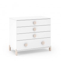 La Cómoda Elemental 4 Cajones de Muebles Ros es ideal para la habitación de nuestros peques ya que podemos personalizarla entre su gama de colores natural y cogerla con ruedas o patas en madera de haya natural