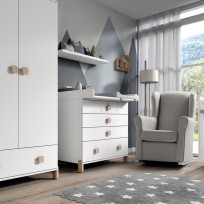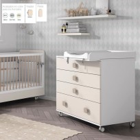 Se puede colocar encima la base del cambiador de madera junto con la colchoneta cambiador para poder vestir y cambiar el pañal al peque cómodamente