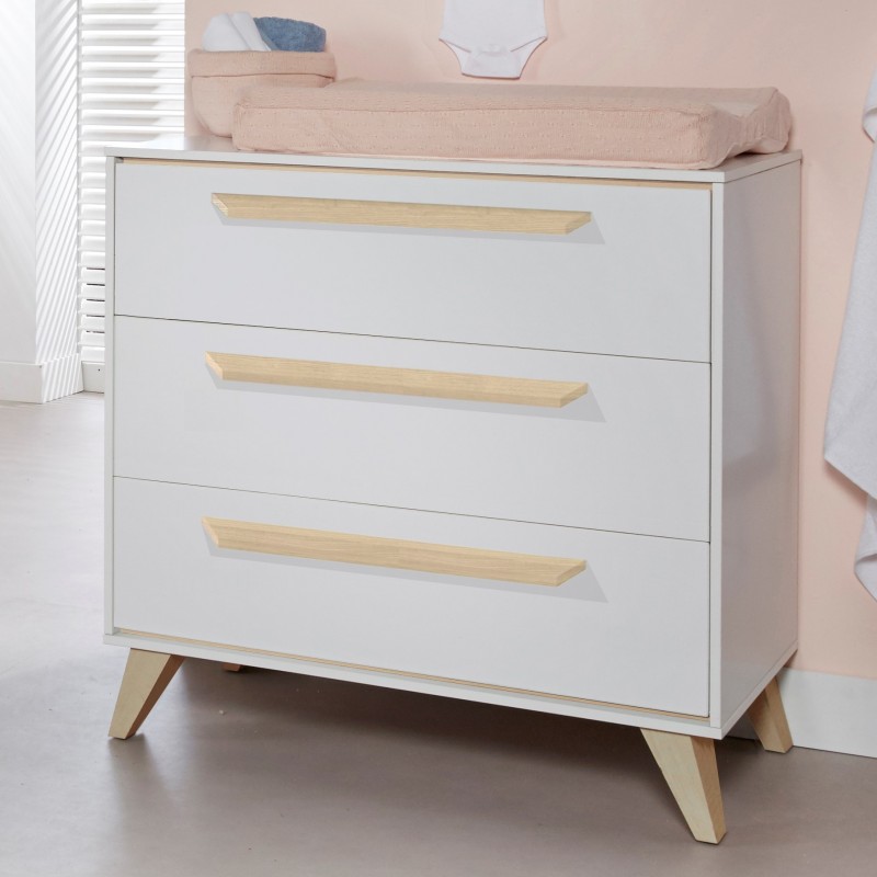 La cómoda cambiador Lazzio de Ikid presenta un diseño estilo nórdico combinando los colores blanco y natural.