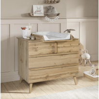 Cómoda Martha de Micuna de estilo natural fabricada con madera, color roble que aportará calidez a los espacios infantiles.