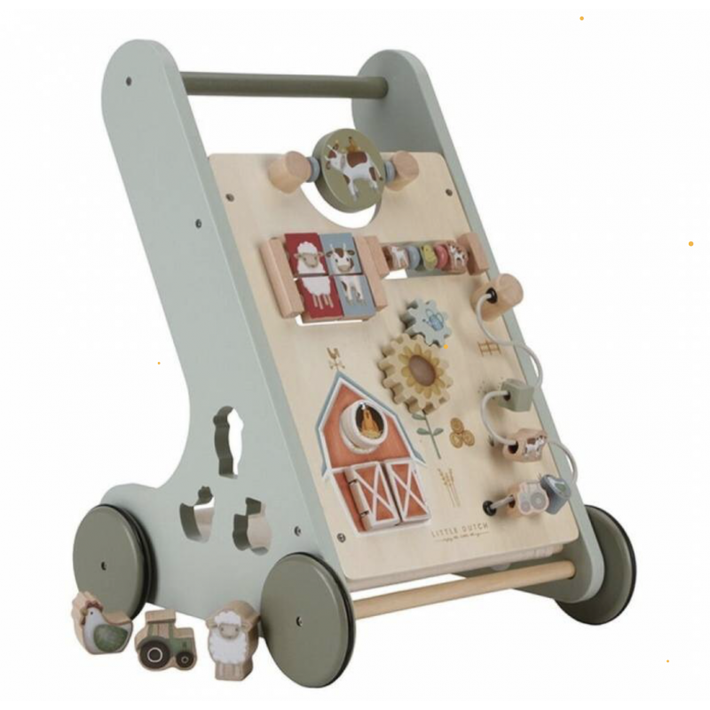Este andador multiactividades pequeña granja de Little Dutch ofrecerá máxima distracción y entretenimiento a nuestros pequeños, ya que además de acompañarlos en sus primeros pasos, podrán desempeñar hasta 8 actividades distintas.