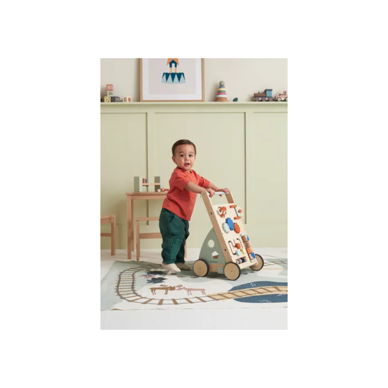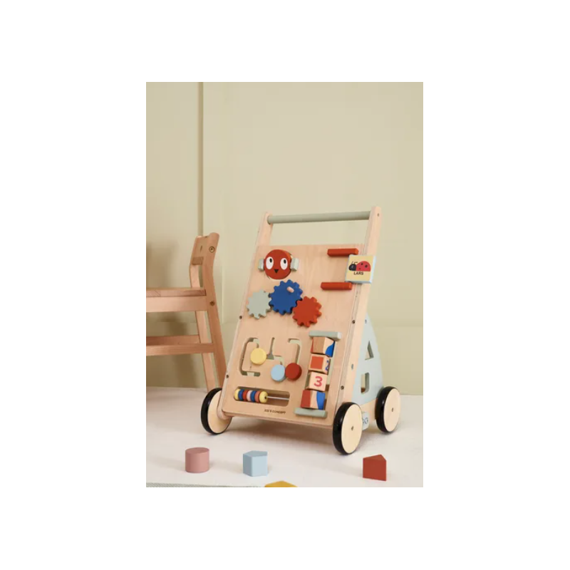 Este correpasillos multiactividades de madera de la marca kids concept ofrecerá máxima distracción y entretenimiento a nuestros pequeños, ya que además de acompañarlos en sus primeros pasos, podrán desempeñar distintas actividades de entretenimiento.