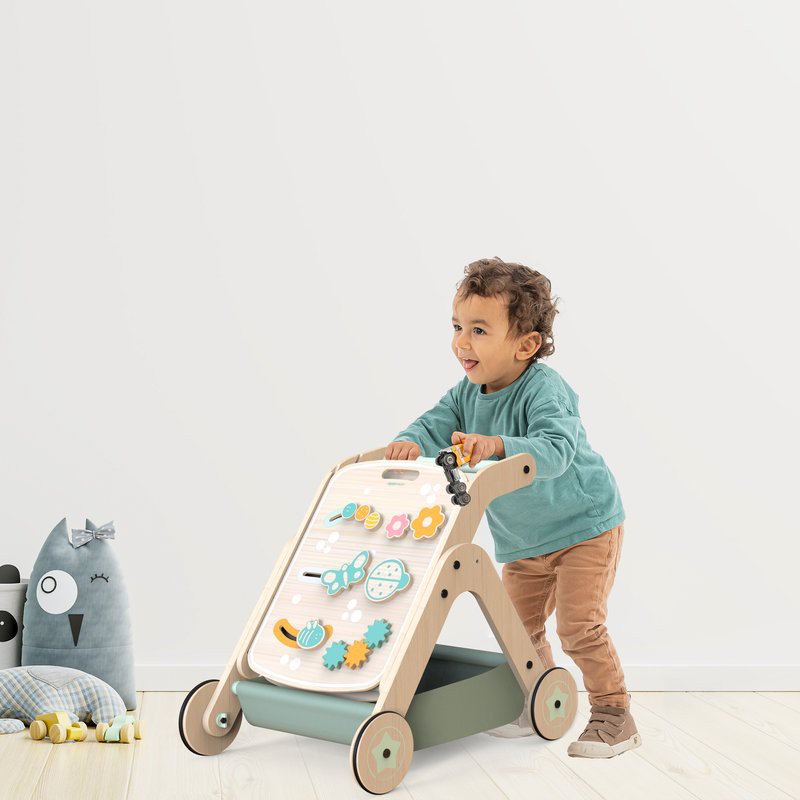 ¡Diversión, desarrollo y movimiento en un solo producto! La mesa de actividades multifunción 4 en 1 está diseñada para acompañar a tu bebé en cada etapa de su crecimiento. Se transforma en: