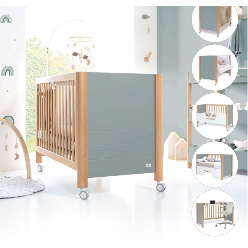 Esta cuna de bebé también dispone de varios kits opcionales que la pueden convertir en distintas etapas que puedes usar según tu peque lo necesite. Se puede convertir en una cuna de colecho, camita infantil y/o sofá infantil.