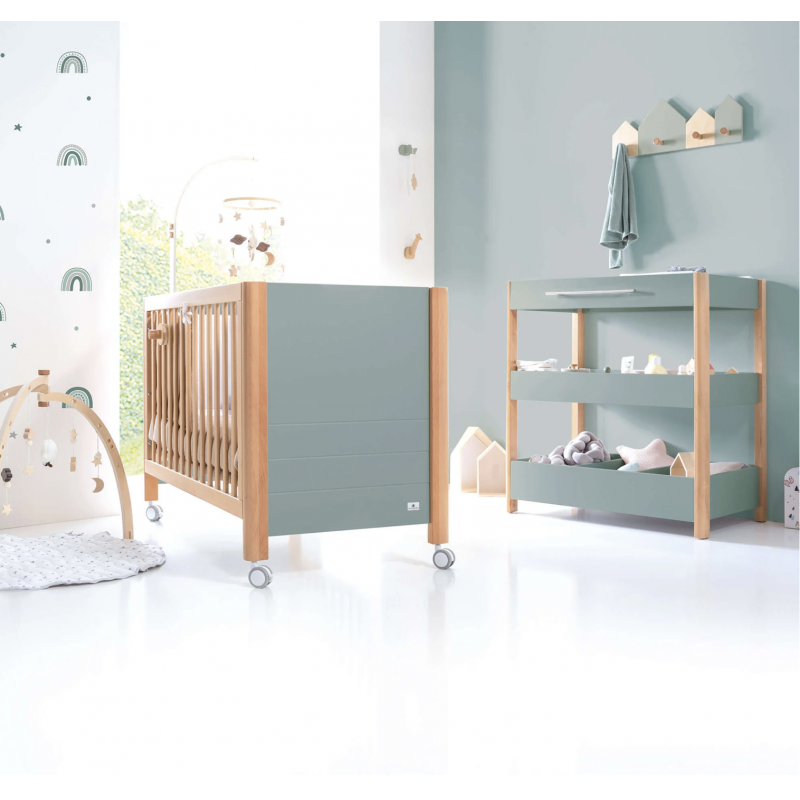 Tiene unos tonos dulces que la convierten en una cuna cálida y confortable que quedan ideales combinados con la madera de su estructura.