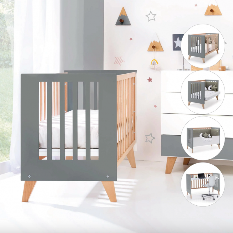 La podrás usar como cuna convencional, cuna de colecho pegada a la cama, camita infantil o escritorio.