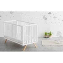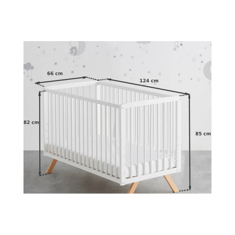 🔧 Convertible: Añade la barandilla doble de Mandarina (opcional) y transforma la cuna en camita Montessori.