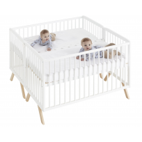La Cuna Gemelar Nuru se forma con 2 cunas individuales más un kit especial gemelar de unión que permitirá que nuestros peques puedan dormir juntitos todo el tiempo que desees. En cualquier momento la cuna gemelar puede convertirse en 2 cunitas individuales.
