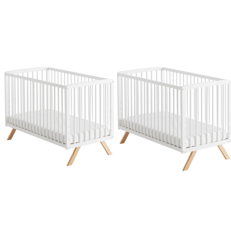 La Cuna Gemelar Nuru Natural de Mandarina es una preciosa cuna de estilo Nórdico donde podrás practicar el Colecho con una de las cunas, teniendo cerquita a tus peques gracias al kit que incluye.