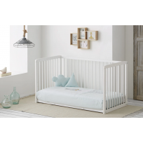La Cuna Nuru nos permite poder transformar cuando el peque se haga mayor nuestra cuna en una bonita y práctica camita estilo Montessori añadiendo la barandilla doble y retirando la barandilla lateral