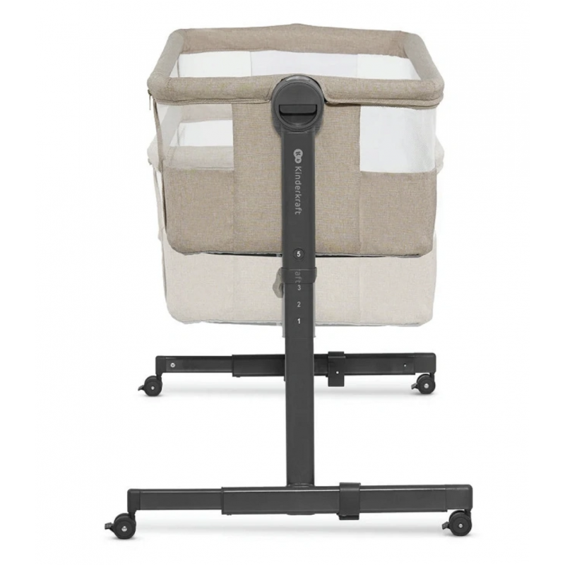 Las patas de NESTE UP son ajustables por lo que su longitud se puede adaptar fácilmente a la estructura de la cama. La altura de la cuna se puede ajustar en 5 niveles y de esta manera la NESTE UP se puede colocar mejor al lado de la cama.