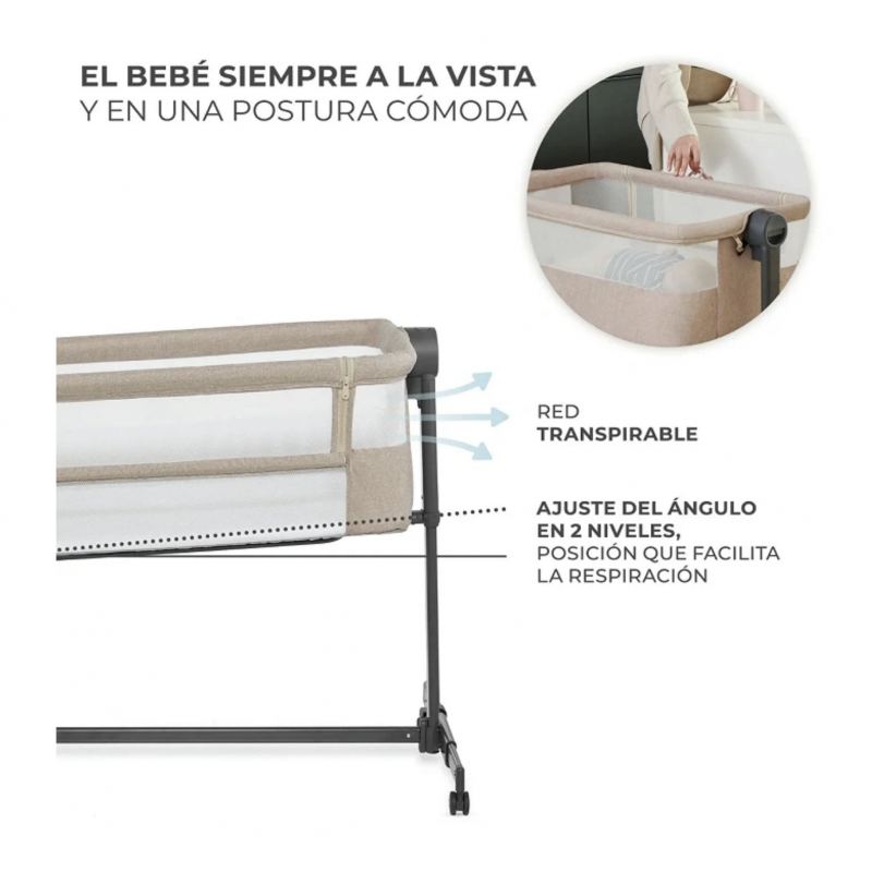 La cuna de colecho facilita la lactancia nocturna sin la necesidad de levantarse. Es universal: gracias a los ajustes, se acopla fácilmente a la cama de los padres.