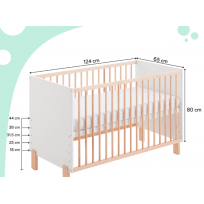 La Cuna Umami nos permite poder transformar cuando el peque se haga mayor nuestra cuna en una bonita y práctica camita estilo Montessori añadiendo la barandilla doble y retirando la barandilla lateral.
