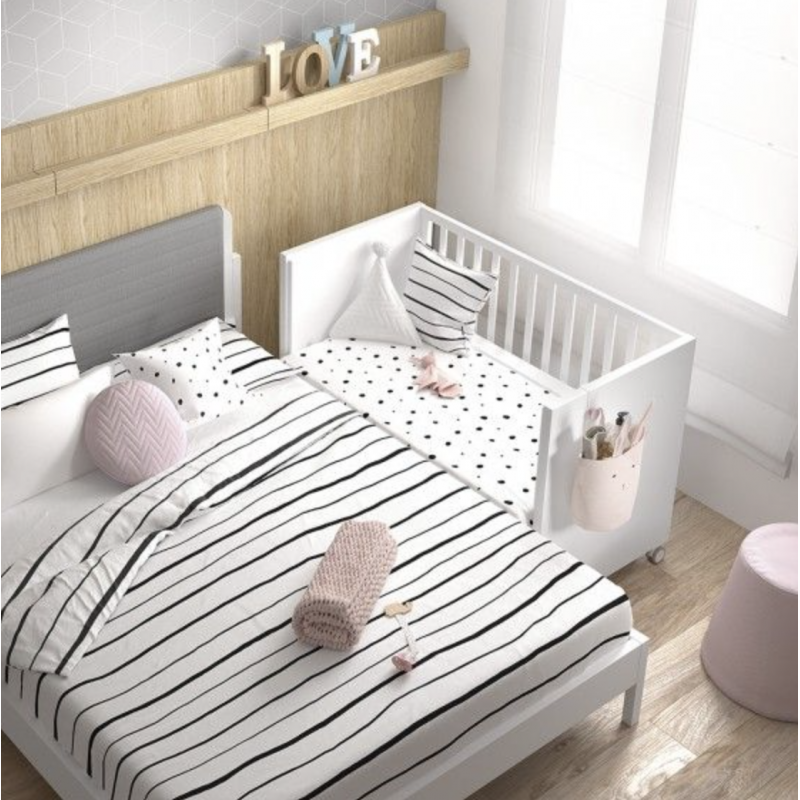 Su medida para colchón de 60x120 y sus 8 diferentes posiciones de regulación podrá acoplarse prácticamente a la totalidad de las cama de los papás sea cual sea su modelo y versión de colchón. De esta forma siempre podrás estar cerca de tu bebé