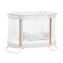 Esta cuna ha sido diseñada junto a expertos en seguridad. Tiene laterales transpirables de suave tejido de red y una solución única donde el colchón está cosido al tejido de red, lo que permite una buena ventilación y te da la tranquilidad de que el bebé no se enganchará los brazos o las piernas entre el colchón y los laterales.