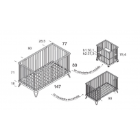 Exterior Cuna: 147 x 77 x 89 (Largo x Ancho x Alto)