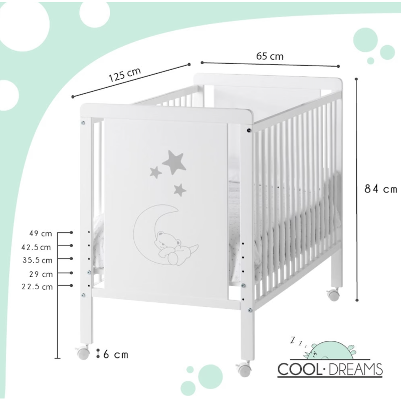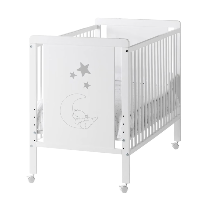 Fabricada con materiales resistentes y libres de tóxicos, la cuna incluye barandillas seguras, sistema de ventilación en la base y altura del somier regulable en 3 posiciones, adaptándose a la comodidad de padres y bebés. Sus acabados suaves protegen la piel del bebé, mientras que su diseño funcional facilita la integración en cualquier decoración infantil.
