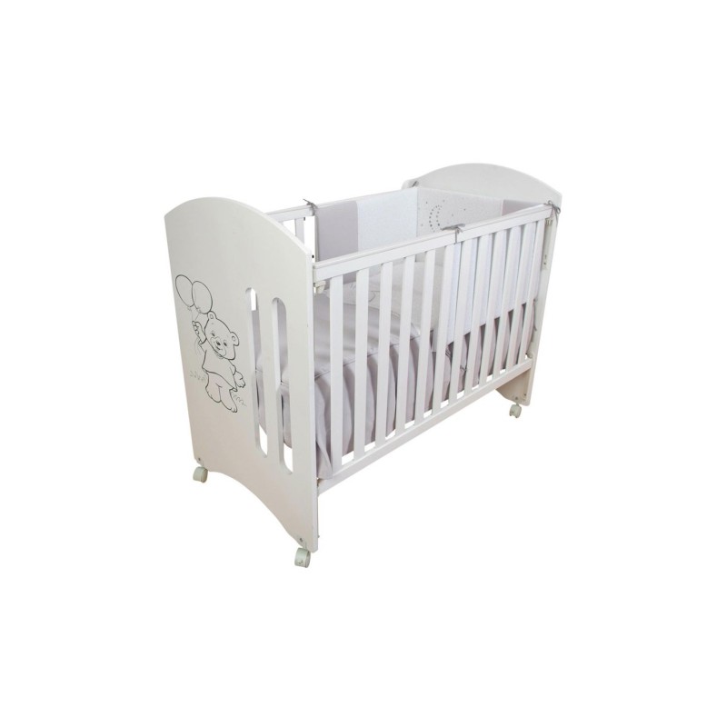 Construida en madera de alta calidad y acabada con pinturas no tóxicas, la cuna ofrece una estructura estable y resistente que garantiza la máxima seguridad. Sus barrotes con distancia homologada permiten una vigilancia tranquila y segura durante el descanso.