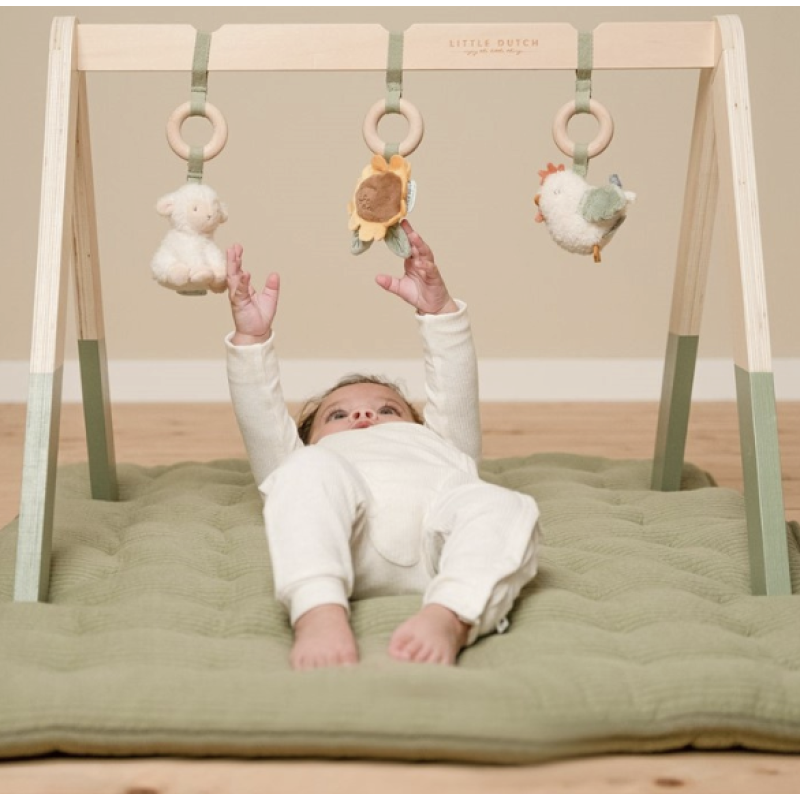 Nuestros pequeños podrán entretenerse un buen rato con este gimnasio para bebés de madera.