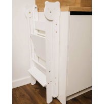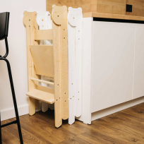 El taburete será un apoyo fundamental para el peque durante mucho tiempo, ya que se puede cambiar (ajustar) su altura. Es muy duradera, lo que significa que también un adulto puede subirse a él para coger algo de los estantes más altos (El límite de peso es de 50 kg.). Además, está creada según las normas de seguridad, proporcionando un entorno seguro.