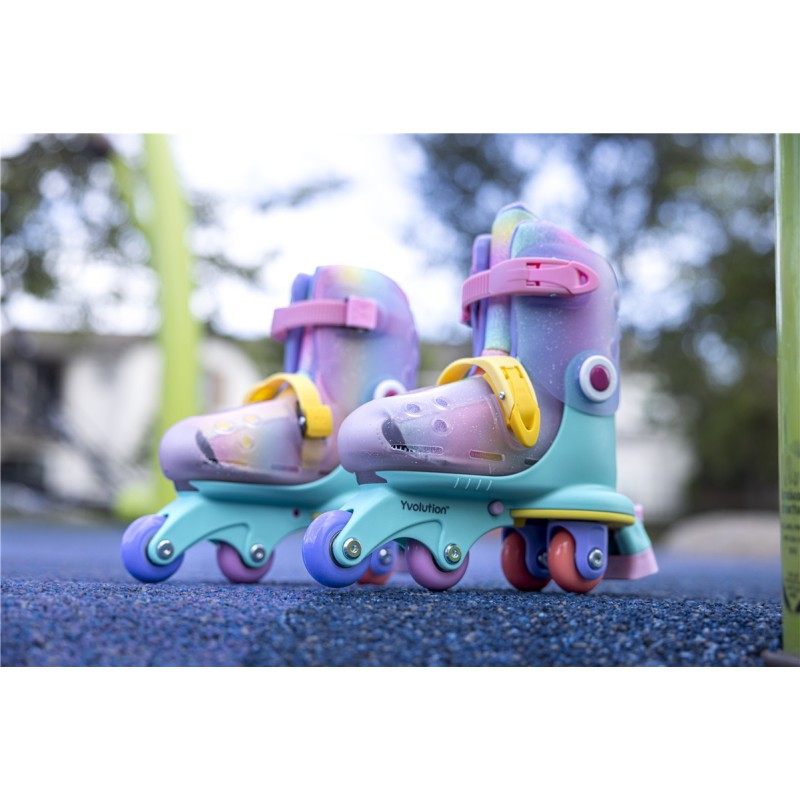 Descubre los Patines Twista Rainbow de Yvolution, diseñados para niños de 30 a 34 en tallas ajustables. Con un atractivo colorido pastel, estos patines son ideales para que los más pequeños experimenten la emoción del deslizamiento.