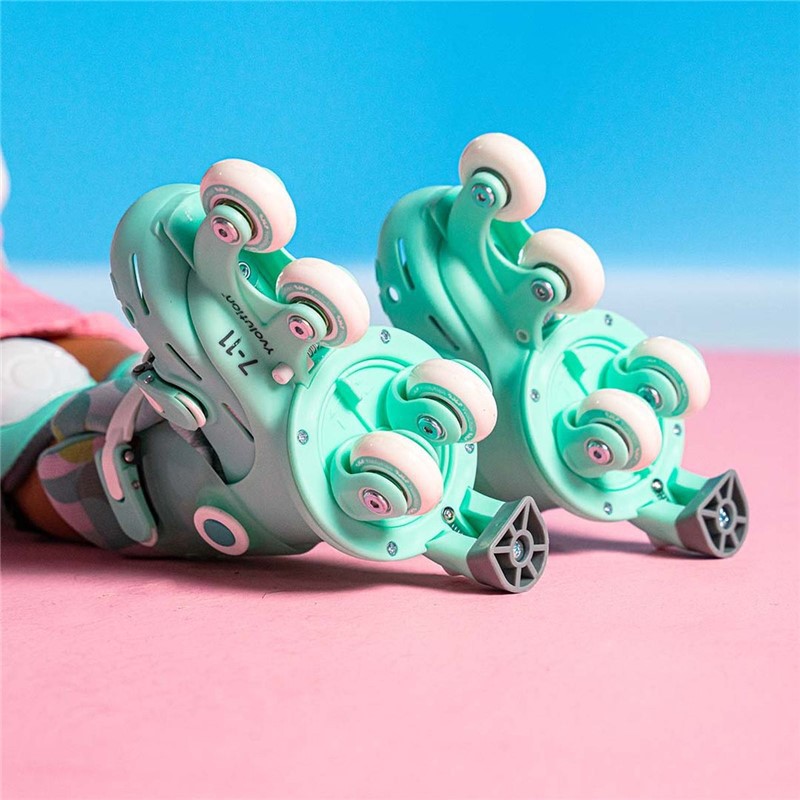 Los Patines Twista Verde T.30-34 de Yvolution son la opción ideal para que los niños descubran el emocionante mundo del patinaje. Diseñados para ofrecer un ajuste perfecto, estos patines se adaptan a cuatro tallas diferentes con solo pulsar un botón. Su innovador sistema permite cambiar de modo de patinaje, pasando de dos ruedas laterales a ruedas en línea, todo sin necesidad de herramientas.