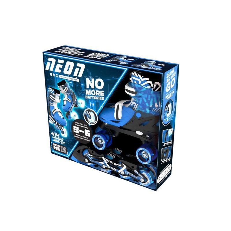 Los Patines Combo Neón GOTEKI en azul son la elección ideal para jóvenes aventureros que desean aprender a patinar. Con un diseño 2 en 1, estos patines ofrecen la versatilidad de usarse como patines en línea o cuádruples, perfectos para principiantes.