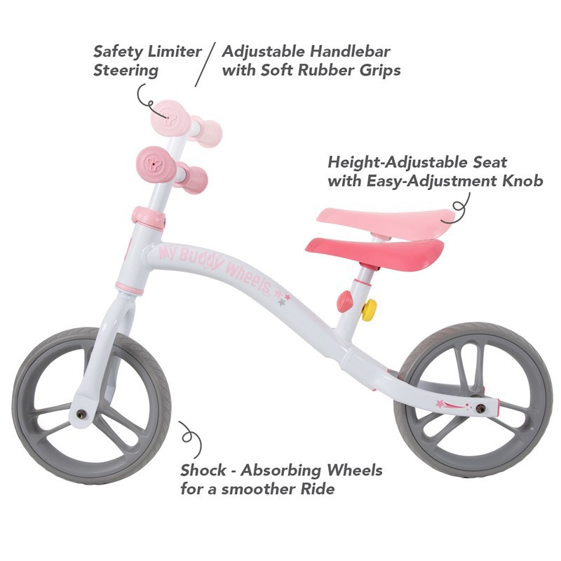 Descubre el Unicornio My Buddy Wheels Yvolution, la bicicleta de equilibrio perfecta para niños de 2 a 4 años. Diseñada para facilitar el aprendizaje de habilidades ciclistas, combina la diversión de un adorable peluche con la estabilidad y seguridad que tu pequeño necesita. Su manillar ajustable y empuñaduras de suave goma aseguran un agarre cómodo, mientras que el sillín es fácilmente ajustable en altura para adaptarse al crecimiento del niño. Las ruedas que absorben los golpes garantizan una conducción suave en diversas superficies.