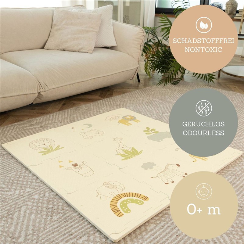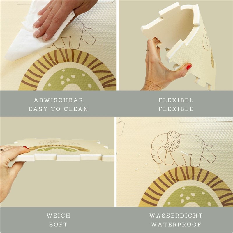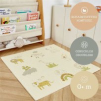 ¡Tu hijo juega y tú te relajas! Esta alfombra de juego de foam grande es perfecta para gatear, jugar y hacer ejercicio. Con sus elegantes colores pastel y motivos de animales, complementará el estilo de cualquier habitación infantil.