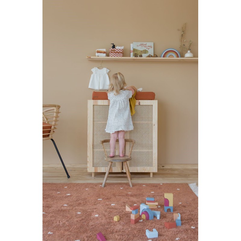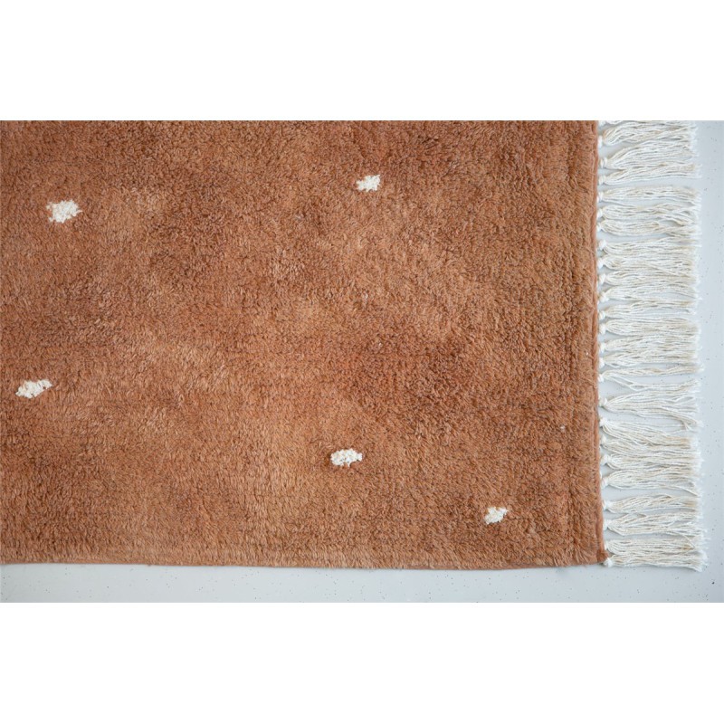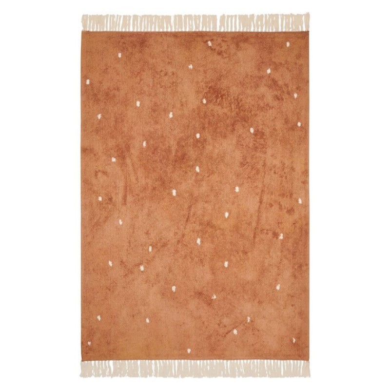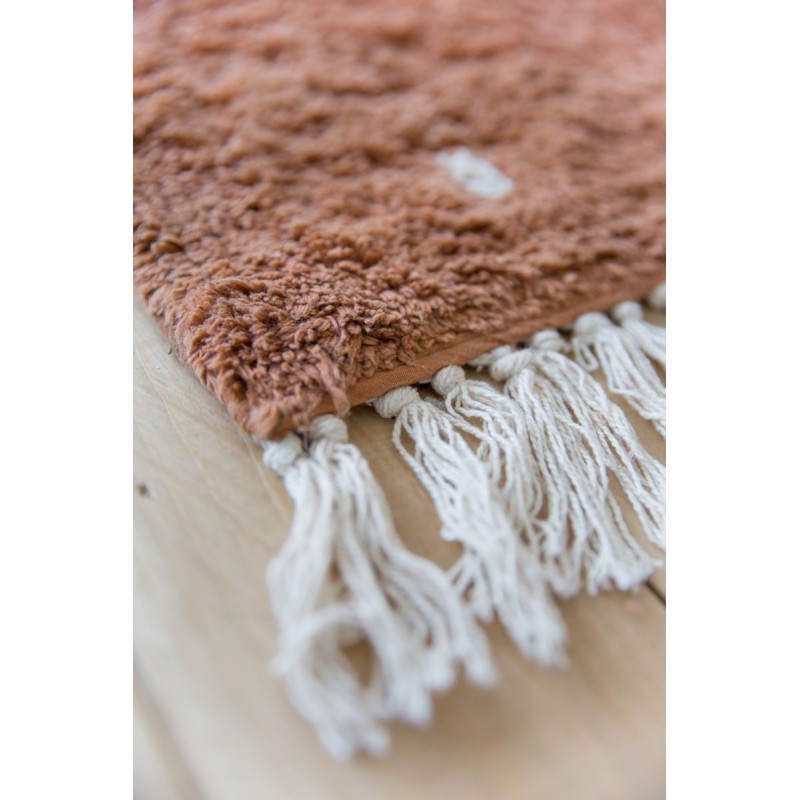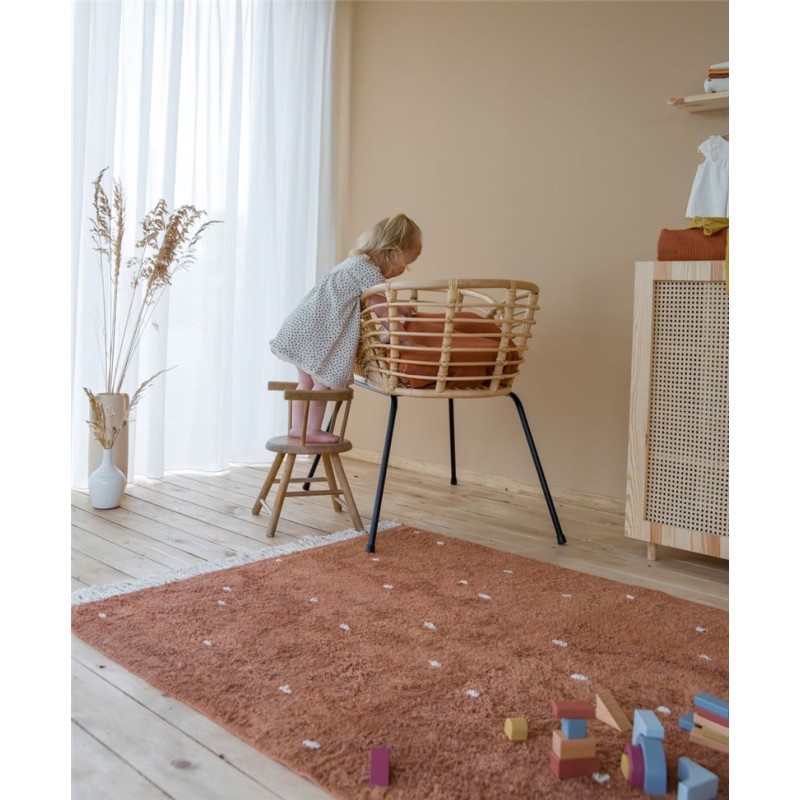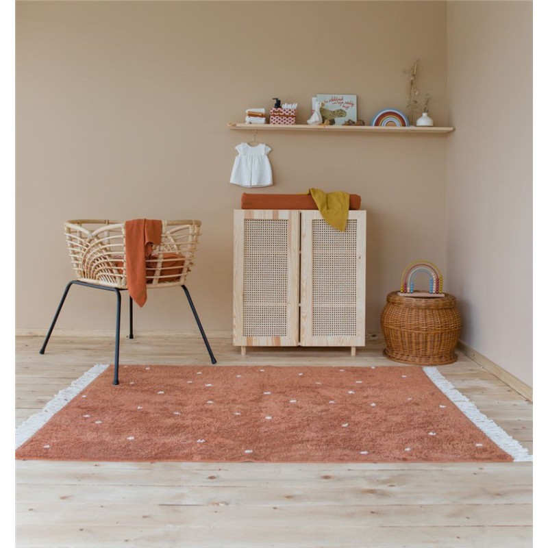 Transforma la habitación de tu pequeño con la Alfombra Puntos Teja Little Dutch. Con medidas de 170 x 120 cm, esta alfombra rectangular es perfecta para crear un espacio acogedor y divertido. Su diseño en color teja con puntos, acompañado de borlas en los lados, añade un toque moderno y estilizado.