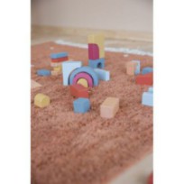 Hecha a mano con 100% algodón reciclado, cada alfombra es única, promoviendo un entorno seguro y suave para el juego. Además, su fácil mantenimiento (¡lavable a máquina!) garantiza que la limpieza sea un juego de niños.