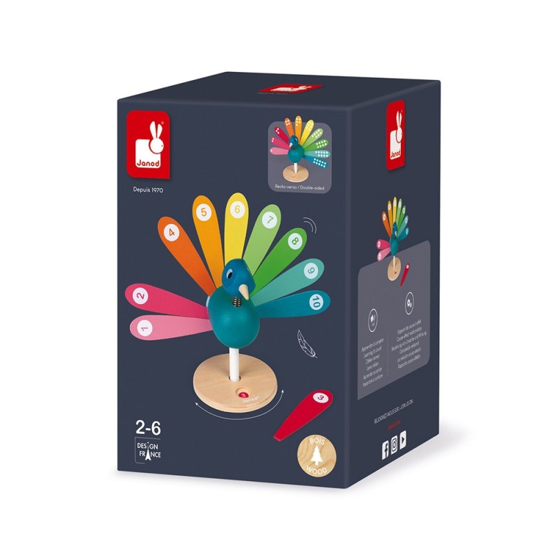 Bonito y colorido pavo real de Janod para que los niños aprendan los números.