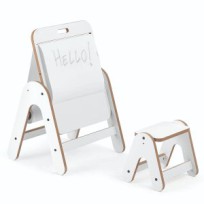 Este versátil producto funciona como mesa y pizarra, ideal para fomentar la creatividad infantil. Su superficie permite escribir o dibujar utilizando un rollo de papel (no incluido), que se acopla a la barra de madera integrada.
