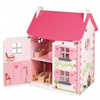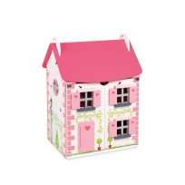 La Casa de Muñecas de Madera Mademoiselle de Janod con sus 3 pisos está perfectamente decorada y con su mobiliario a juego