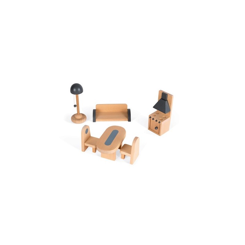 Mobiliario incluido: 11 accesorios para acondiconar el dormitorio, el cuarto de baño, la cocina y el salón