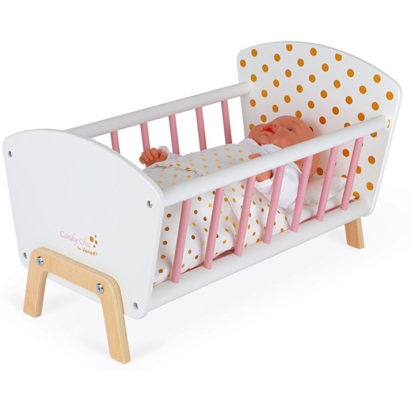 La Cunita de madera Candy Chic de Janod es el complemento indispensable para que nuestras muñecas puedan descansar arropadas junto a nosotras