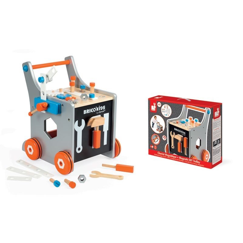El Carrito de Bricolaje de madera de Janod ayudará a nuestros peques a fomentar su desarrollo motor, la estabilidad al andar y sus habilidades a la vez que se divierten con sus múltiples actividades