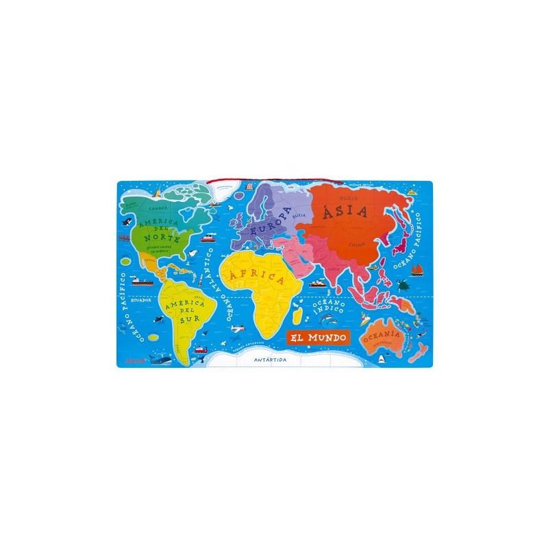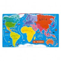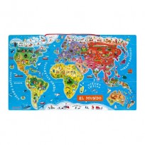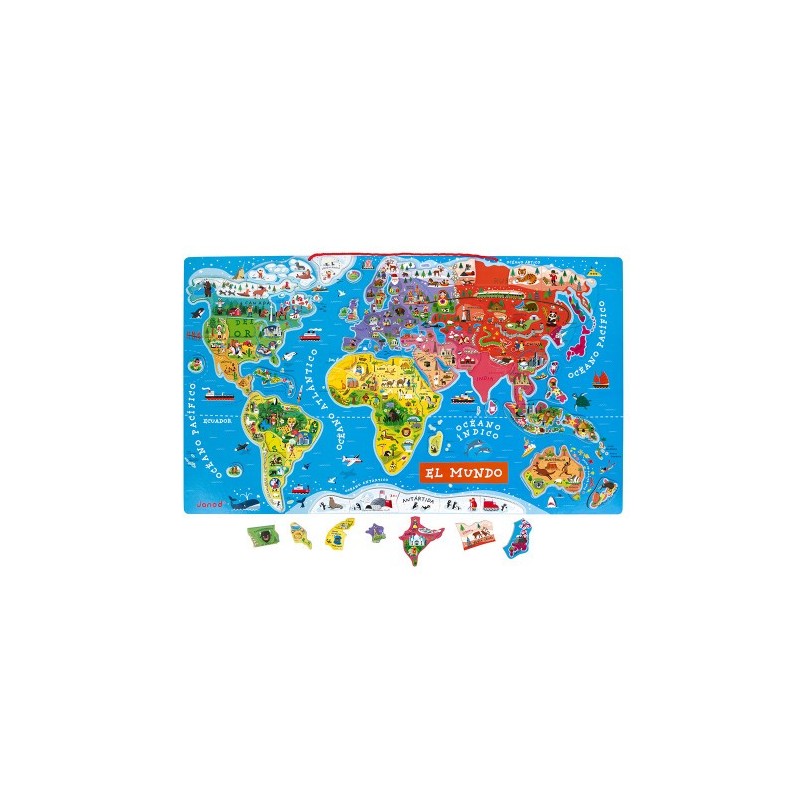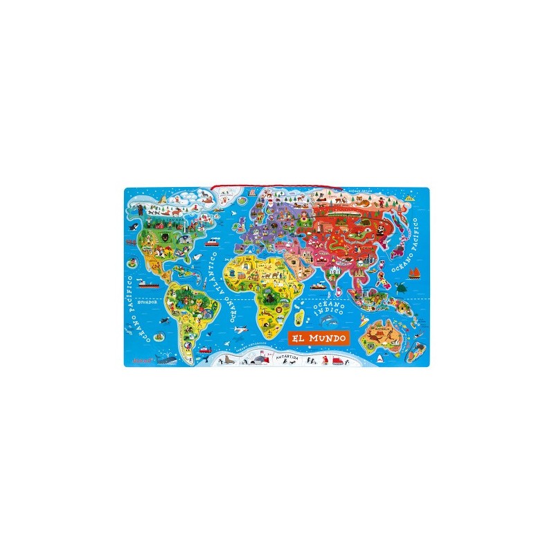 Juego Didáctico Magnético fabricado en madera del Atlas Mundial en versión español.. ¡ Un Viaje alrededor del mundo a través de 92 piezas magnéticas ilustradas!